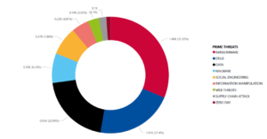 Główne zagrożenie ze strony cyberbezpieczeństwa to złośliwe oprogramowanie typu Ransomware. Atak typu ransomware stanowi prawie 31.32 % wszystkich rodzajów ataków oraz zanotowany wzrost, w okresie styczeń – czerwiec 2023, to ok. 1260%, najpopularniejsze to LockBit 3.0 – ok. 47%, BlackCat – ok. 18% przypadków. Najczęstszymi celami są sektor produkcji (ok. 20%), sektor usług (ok. 14%), sprzedaż detaliczna (ok.9%), sektor bankowy (ok. 8%). Jednak na przełomie maja i czerwca 2023 zanotowany spadek ilości odnotowanych ataków tego typu.